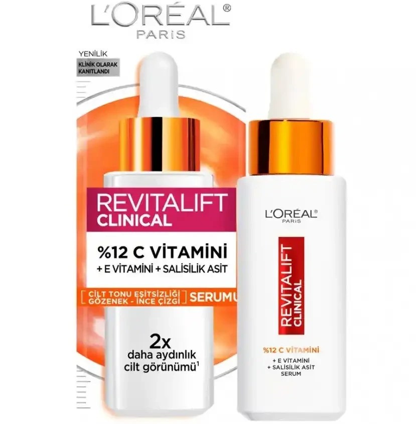 سرم لورال Loreal مدل Revitalift Clinical حاوی 12% ویتامین C حجم 30 میل، یکی از محصولات محبوب شرکت لورال برای بهبود سلامت پوست است. این سرم حاوی ترکیباتی است که میتوانند به پوست شما کمک کنند تا بهبود یابد، آن را تغذیه کنند و از علائم پیری جلوگیری کنند.