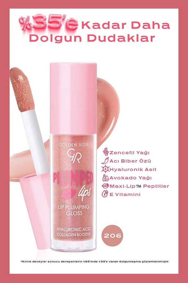 لیپ گلس حجم‌دهنده گلدن رز Golden Rose شماره 206 | براق‌کننده لب با جلوه درخشان و افزایش حجم طبیعی | 4.7 میل