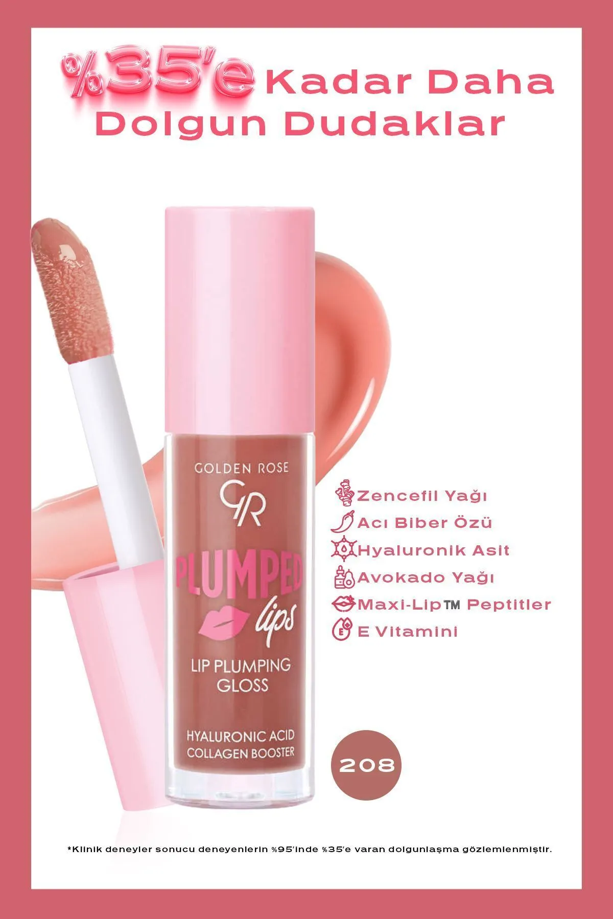 لیپ گلس حجم‌دهنده گلدن رز Golden Rose شماره 208 | براق‌کننده لب با جلوه درخشان و افزایش حجم طبیعی | 4.7 میل